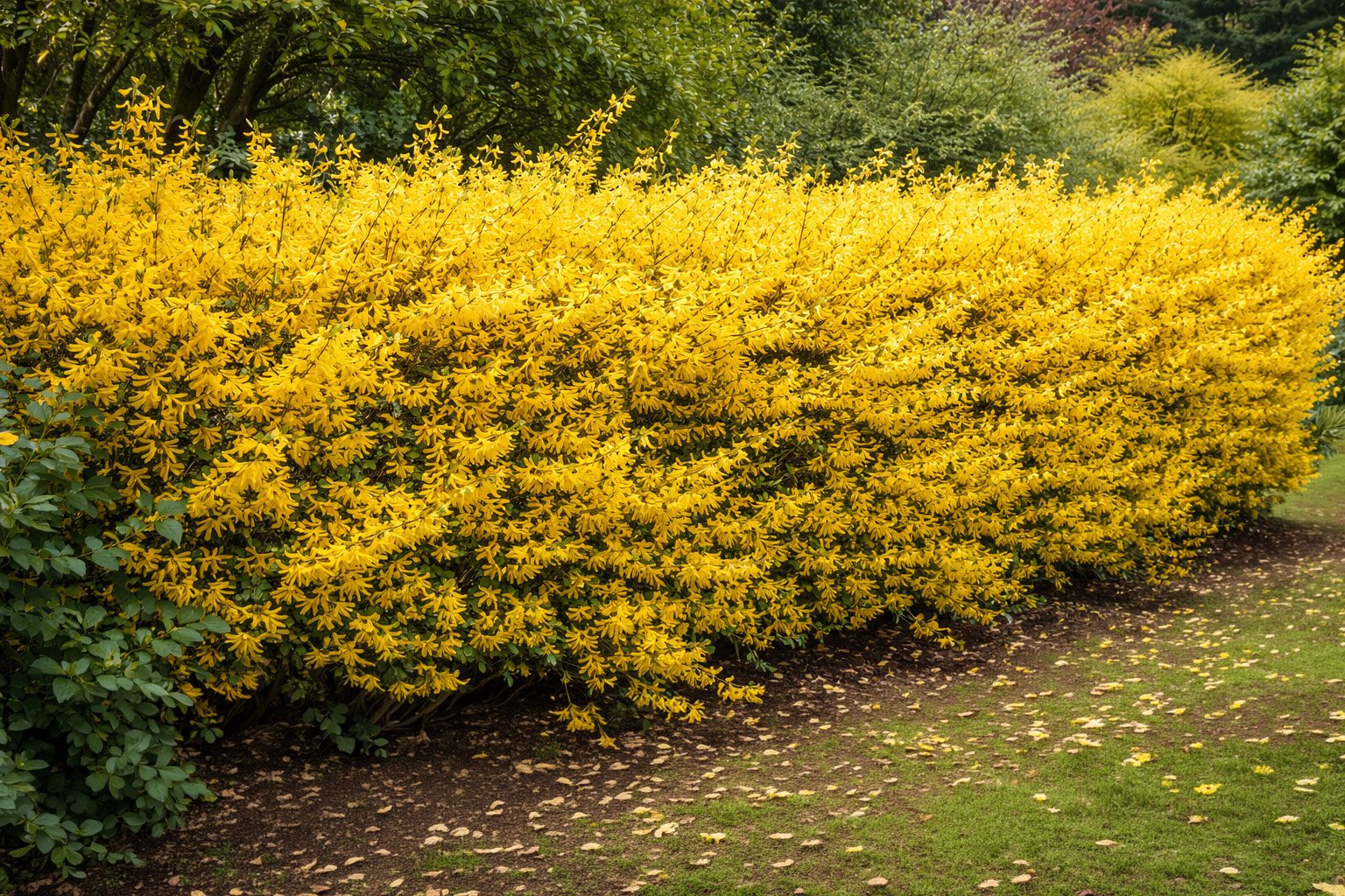 | Forsythia | 40 à 60 cm/an | Caduc | Floraison jaune spectaculaire dès février |